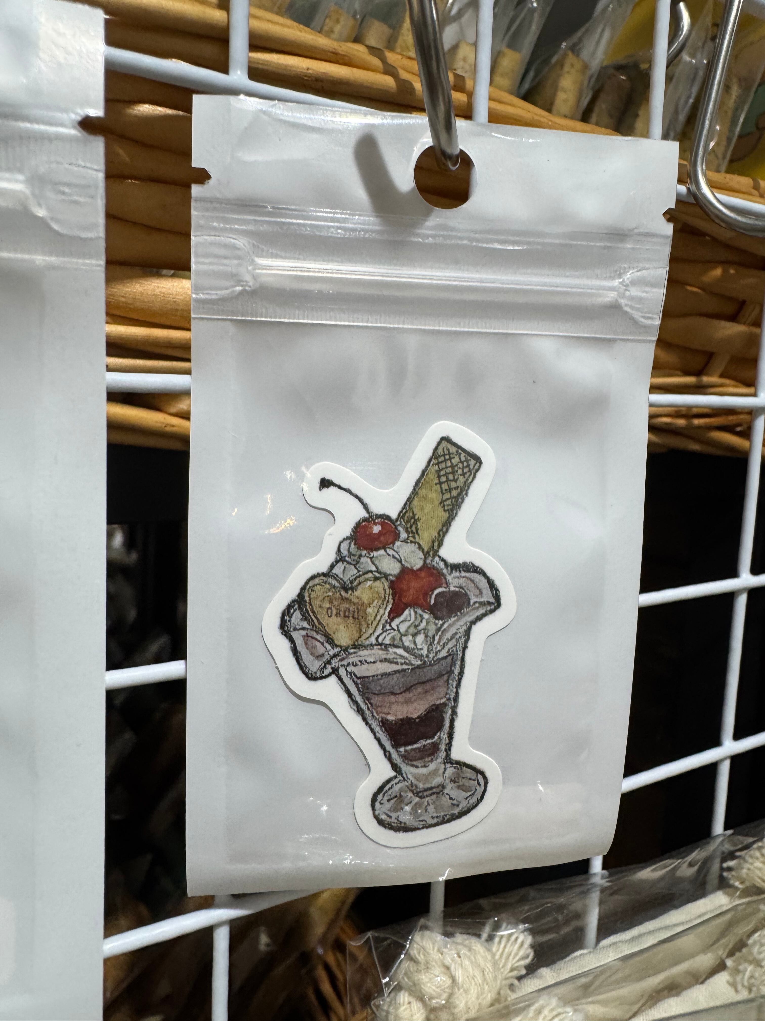 マット加工のダイカットステッカーです。 縦約5〜5.5cm、横約2〜4cm